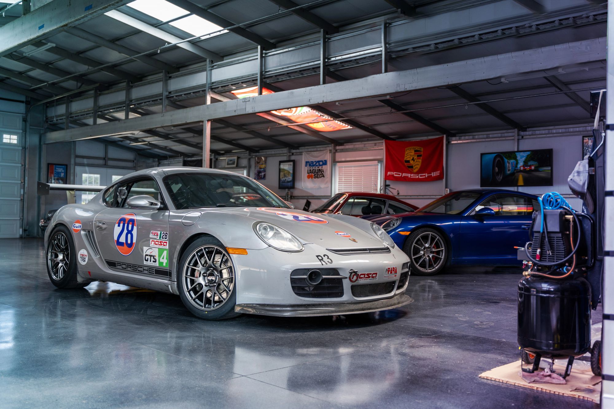 Just one step into the garage and we instantly knew we were in for a treat. We met up with Shaun to photograph our new forged EC-7R wheels designed specifically for the Porsche 987, 981, and 718 Cayman chassis. This wasn’t some ordinary garage, it was more like a Porsche museum with a beautiful selection of new and classic Porsches and memorabilia.