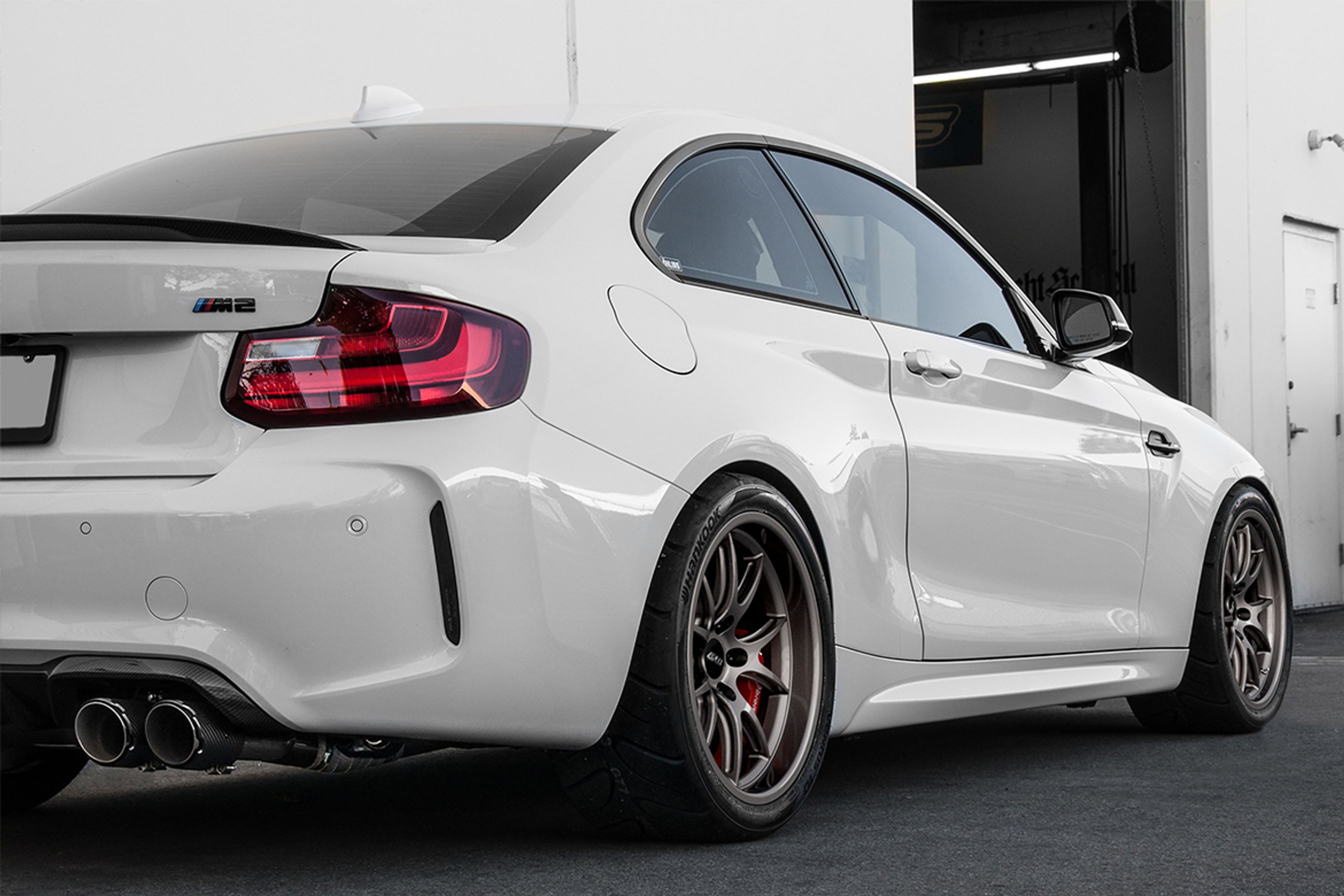 At launch, we were hoping our 18×11″ ET44 wheel intended for the F8X M3/M4 would fit the rear of the M2. Unfortunately, the M2 has less inner clearance to work with, and it didn’t fit well. Since then we’ve been working with multiple partners who’ve helped us test a wide range of wheels and tires on the track.