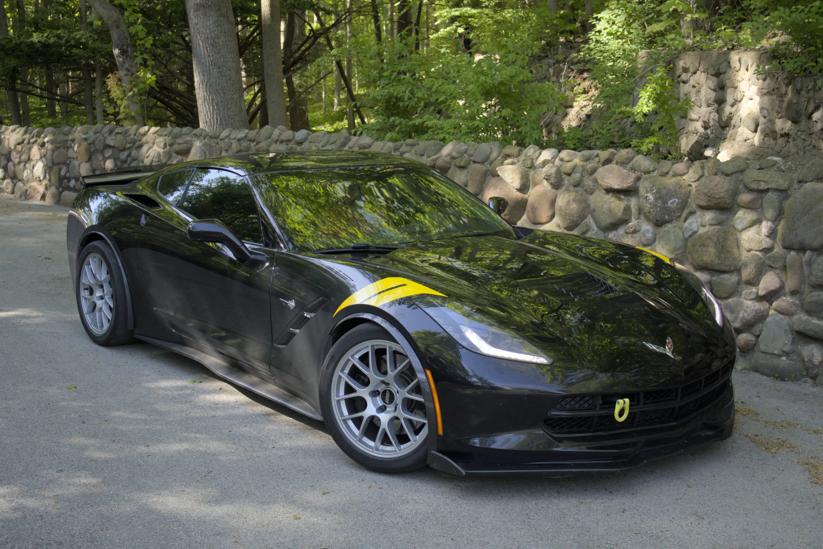 Front wheel spats from a C7 Grand Sport / Z06 and a 5mm front spacer. Camber: Front -2 Rear -2