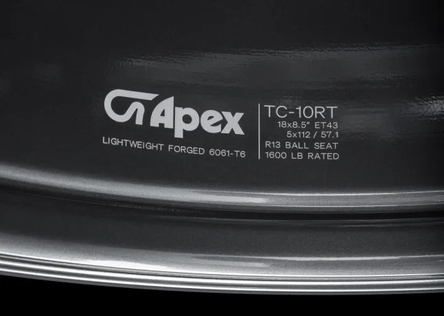 All TC-10RT wheels come with our Apex gloss black cap included, and are interchangeable with your OE cap*. We also offer Apex caps in additional colors. See vehicle-specific product page for more details.